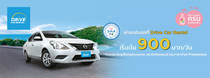 สิทธิพิเศษบัตรเครดิตเคทีซี จองรถเช่าพร้อมประกัน ราคาพิเศษ ที่ Drive Car Rental กับบัตรเครดิต KTC เริ่มต้น 900 บาท/วัน รวมประกันอุบัติเหตุส่วนบุคคล, ประกันภัยรถยนต์ และภาษี (Full Protection)