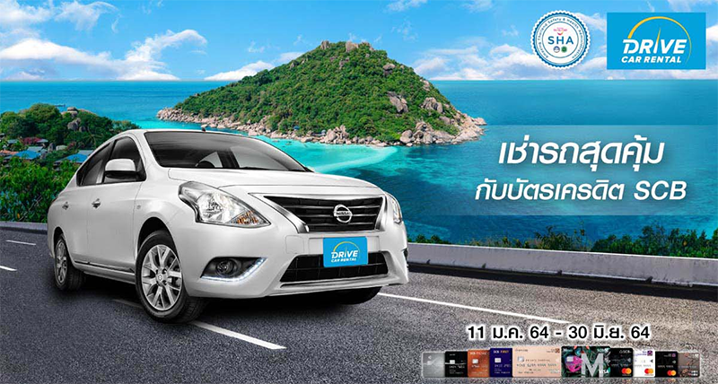 สิทธิพิเศษบัตรเครดิตไทยพาณิชย์ จองรถเช่ากับ Drive Car Rental ราคาเบาๆ เริ่มต้น 900 บาท/วัน เมื่อจองรถผ่าน www.drivecarrental.com หรือ Call Center โทร. 0 2722 8487