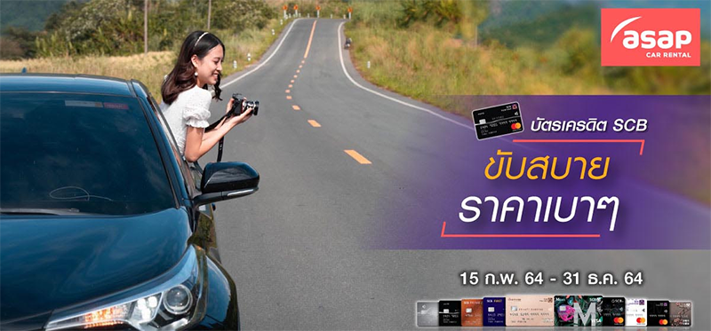 สิทธิพิเศษบัตรเครดิตไทยพาณิชย์ เมื่อจองรถเช่ากับ ASAP Car Rental รับส่วนลดสูงสุด 30%* เช่ารถผ่าน ASAP Call Center โทร. 0 2091 8000 หรือไลน์ @asapcarrental หรือ Facebook : Asap Car Rental