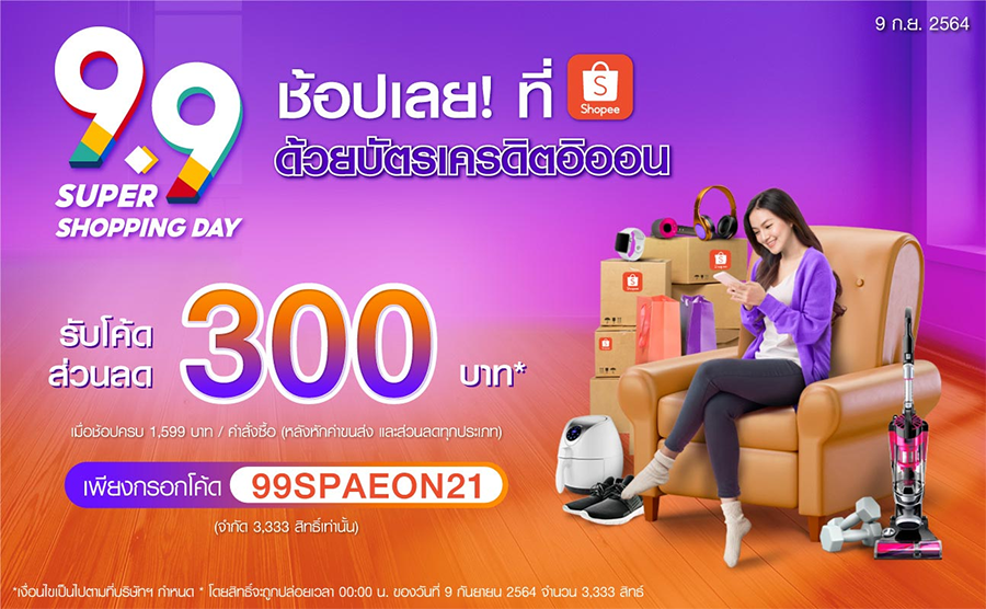 ช้อปเลย! ที่ Shopee ด้วยบัตรเครดิตอิออน รับโค้ดส่วนลด 300 บาท วันที่ 9 ก.ย. 64 เท่านั้น
