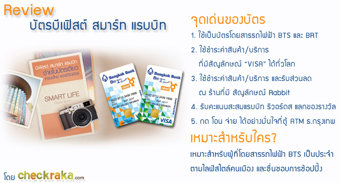 บัตรบีเฟิสต์ สมาร์ท แรบบิท ธนาคารกรุงเทพ หลายๆ คนอาจคุ้นหน้าคุ้นตากันดี หรือบางคนกำลังสนใจที่จะสมัครบัตรนี้อยู่ ก็อาจเป็นตัวช่วยในการตัดสินใจเพิ่มขึ้น ซึ่งบัตรใบนี้ถือว่าเป็นบัตรเดียวที่รวมทุกไลฟ์สไตล์ของคนเมืองเลยก็ว่าได้ เพราะเป็นได้ทั้งบัตรเดบิตวีซ่า บัตรเอทีเอ็ม บัตรโดยสารรถไฟฟ้าบีทีเอส (BTS) และรถด่วนพิเศษบีอาร์ที (BRT) ถ้าพร้อมแล้ว.. เราไปดูหน้าตาและสิทธิประโยชน์ต่างๆ ของบัตรกันเลยค่ะ