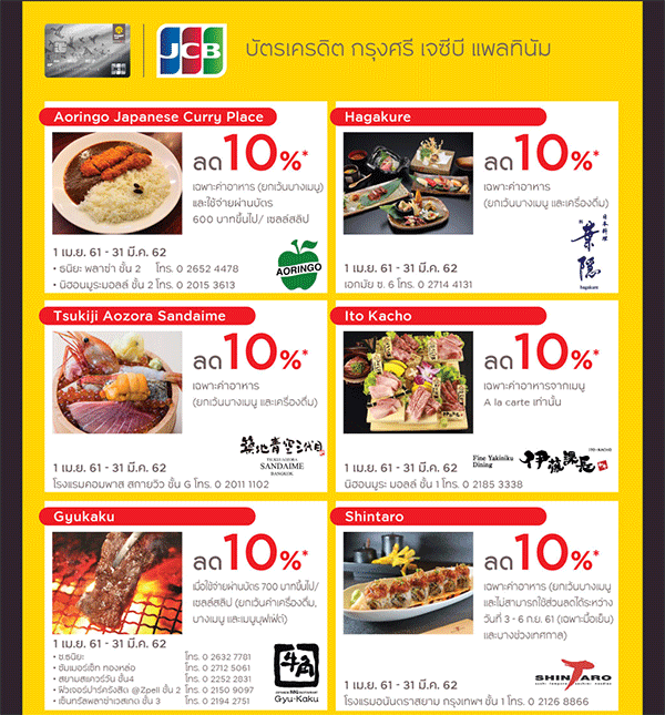 ปิดท้ายกันด้วยโปรโมชั่นเด่นๆ จากบัตรเครดิต กรุงศรี เจซีบี แพลทินัม