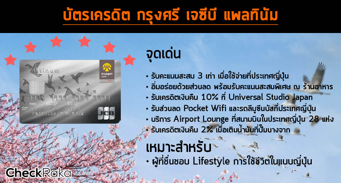 บัตรเครดิต กรุงศรี เจซีบี แพลทินัม ใบนี้กันนะคะ เพราะนอกจาก