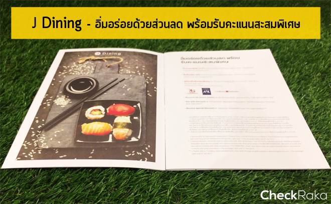 J Dining : อิ่มอร่อยด้วยส่วนลดสูงสุด 10% พร้อมรับคะแนนสะสมพิเศษสูงสุด 2 เท่า มากันที่เรื่องแรก.. สาวกอาหารญี่ปุ่นบอกเลยว่าห้ามพลาด! เพราะจะได้รับทั้งส่วนลด และคะแนนสะสมพิเศษ เมื่อทานอาหารที่ร้านอาหารญี่ปุ่น และร้านอาหารอื่นๆ ทั่วประเทศ ซึ่งปัจจุบันในไทยของเรานั้นก็มีร้านอาหารญี่ปุ่นต่างๆ ที่ร่วมรายการค่อนข้างหลากหลายอยู่พอสมควร โดยการรับส่วนลดและคะแนนสะสมพิเศษจะแบ่งออกเป็น ดังนี้