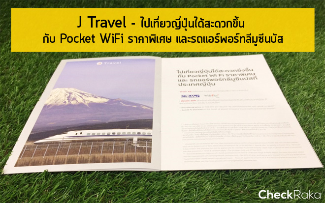 J Travel : Pocket WiFi ราคาพิเศษ พร้อมบริการแอร์พอร์ทลีมูซีนบัส ที่ประเทศญี่ปุ่น เมื่อเดินทางถึงประเทศญี่ปุ่นแล้ว ก็ไม่ต้องกังวลกับปัญหาเรื่องการติดต่อสื่อสาร เพราะเค้ามีบริการให้เช่า 4G Unlimited Pocket WiFi ราคาพิเศษเพียง 150 บาทต่อวัน พร้อมกันนี้ยังจะได้รับส่วนลดสำหรับค่าบัตรโดยสารสูงสุดถึง 20% เมื่อใช้บริการรถแอร์พอร์ทลีมูซีนบัส ที่สนามบินนาริตะ และสนามบินคันไซ อีกด้วย
