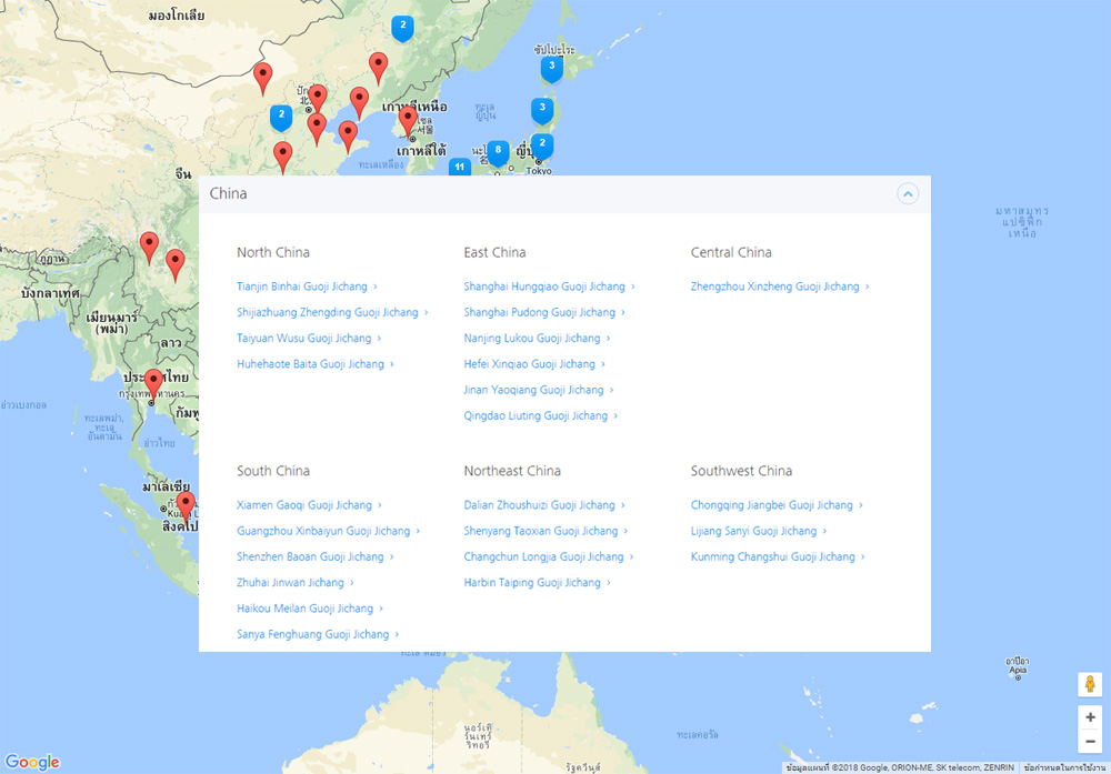 - ประเทศจีน : ทั้งหมด 24 สนามบินหลัก