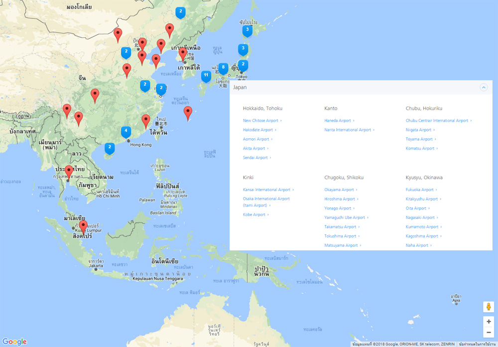 - ประเทศญี่ปุ่น : ทั้งหมด 28 สนามบินหลัก