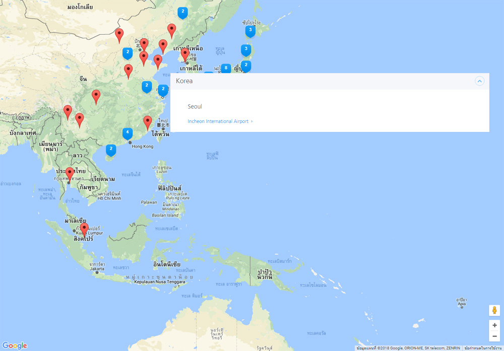 - ประเทศเกาหลี : สนามบินหลัก Incheon International Airport