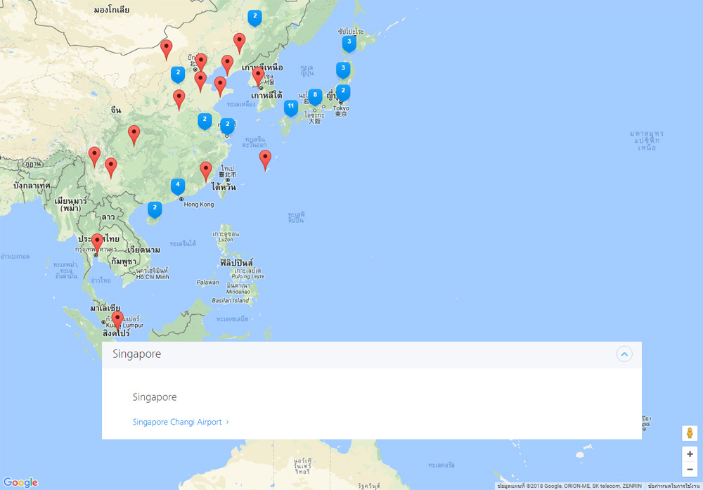- ประเทศสิงคโปร์ : สนามบินหลัก Singapore Changi Airport