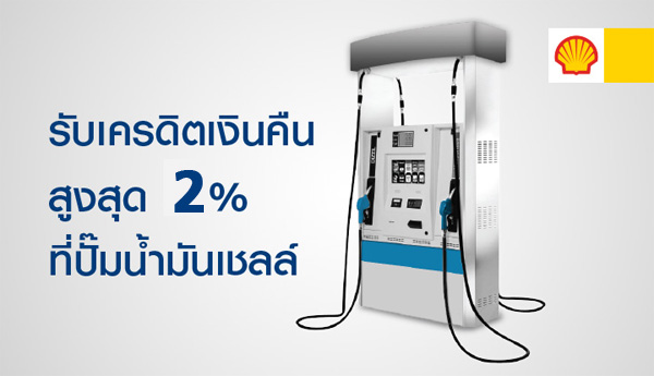 3. รับเครดิตเงินคืนสูงสุด 2% เข้าบัญชีบัตรฯ เมื่อเติมน้ำมันที่ปั๊มน้ำมันเชลล์ ทั่วประเทศ ที่ร่วมรายการ (รับเงินคืนสูงสุด 96 บาท ต่อเดือน)