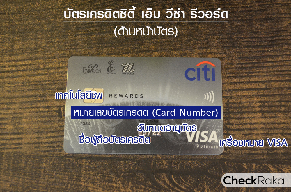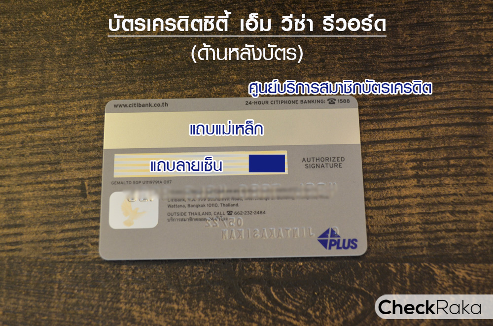 ภาพและรายละเอียดอธิบายจุดต่างๆ ด้านหลังบัตรเครดิตซิตี้เอ็ม วีซ่า รีวอร์ด