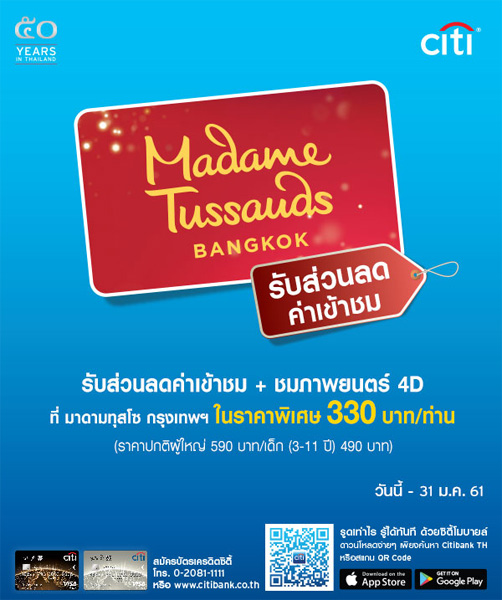 - รับส่วนลดค่าเข้าชม พร้อมชมภาพยนตร์ 4D ที่ มาดามทุสโซ กรุงเทพฯ ในราคาพิเศษ 330 บาท ต่อท่าน