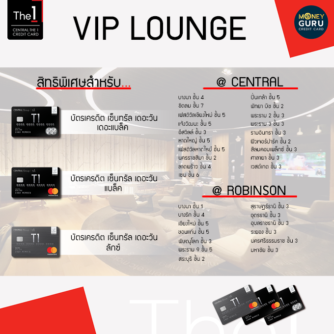 สำหรับบริการสุดเอ็กซ์คลูซีฟ VIP LOUNGE นี้ จะเป็นสิทธิพิเศษสำหรับผู้ถือบัตรเครดิต เซ็นทรัล เดอะวัน ลักซ์, บัตรเครดิต เซ็นทรัล เดอะวัน แบล็ค และบัตรเครดิต เซ็นทรัล เดอะวัน เดอะแบล็ค เท่านั้น