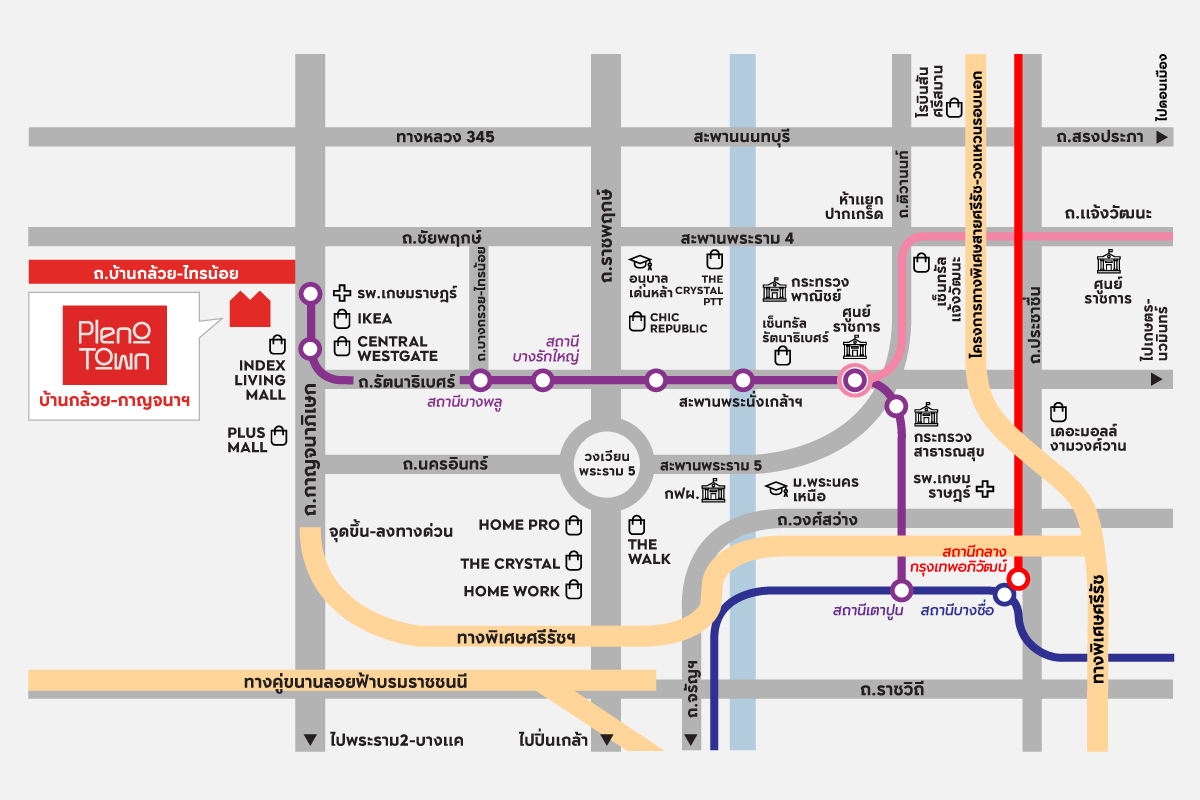 ขนส่งสาธารณะใกล้ทางด่วน (ทางด่วนศรีรัช-วงแหวนรอบนอก), ใกล้รถไฟฟ้า, บ้านติดรถไฟฟ้าสายสีม่วง MRT (บ้านติดรถไฟฟ้าสถานีคลองบางไผ่)