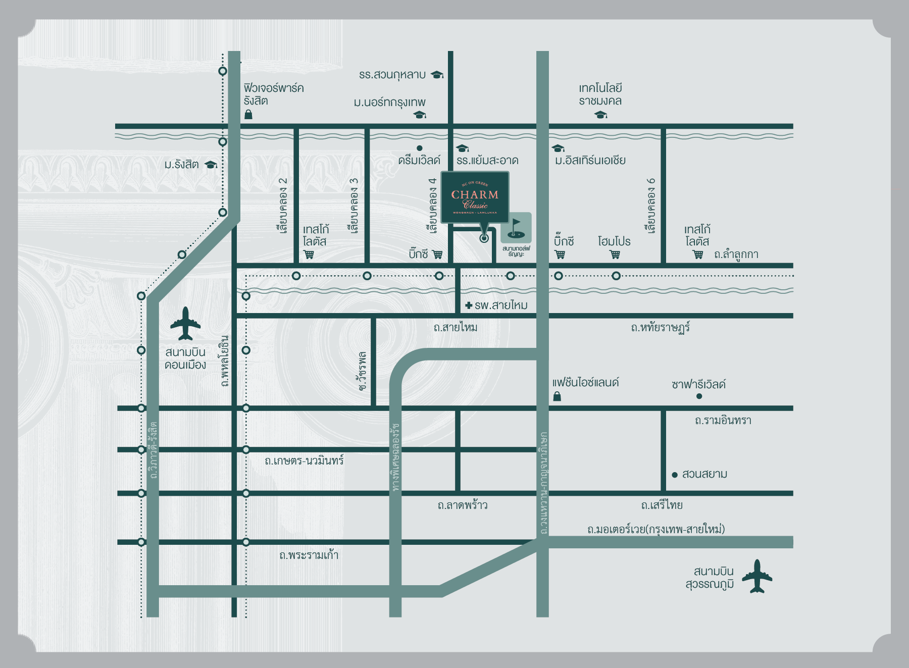 ที่ตั้งถนนเลียบคลองสาม ต.ลาดสวาย อ.ลำลูกกา จ.ปทุมธานี 12150... Google Map | ดูรูปแผนที่