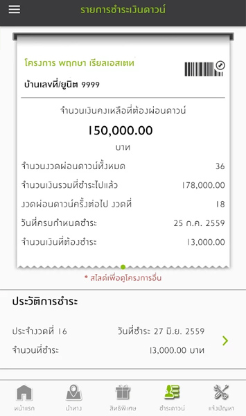 ในส่วนนี้จะอำนวยความสะดวกแก่ลูกบ้านของพฤกษา ที่จะช่วยตรวจสอบ และแจ้งเตือนเกี่ยวกับยอดชำระเงิน