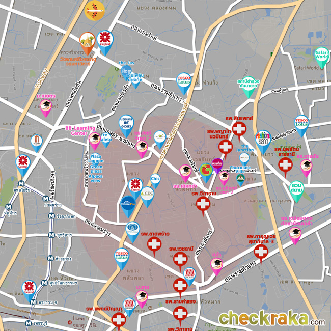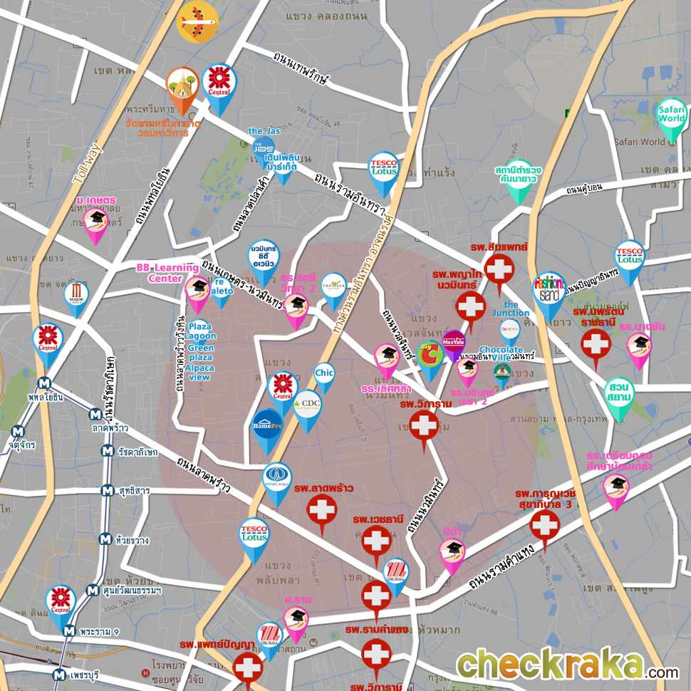 แผนที่แสดงสถานที่สำคัญต่างๆ บริเวณย่านลาดพร้าว-เกษตรนวมินทร์ (