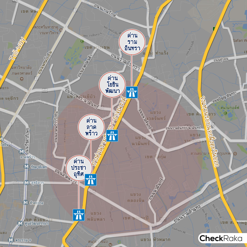 แผนที่แสดงทางด่วนสำคัญๆ บริเวณย่านลาดพร้าว-เกษตรนวมินทร์ (