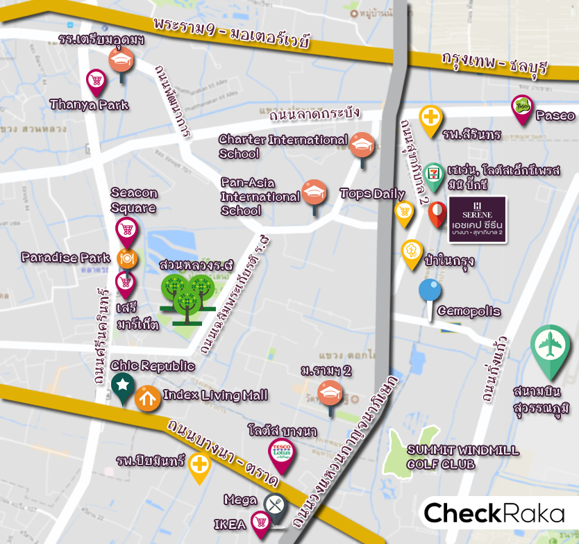 เอชเคป ซีรีน บางนา-สุขาภิบาล 2 (H-CAPE Serene Bangna-Sukhapiban 2)โทร. 02-726-5222 เว็บไซต์