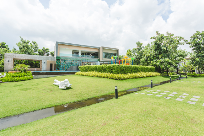 สวนส่วนกลางขนาด 6 ไร่ สามารถมองเห็นคลับเฮ้าส์ขนาด 2 ชั้นจากหน้าถนน