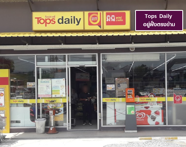 Tops Daily mini supermarket อยู่ฝั่งตรงข้าม และยังไม่ไกลจากร้านสะดวกซื้อและร้านค้า เช่น Lotus Express,