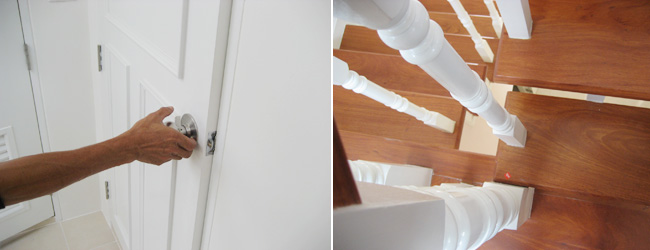 - ในส่วนของบันได ควดทดลองโยกราวบันไดดูว่าไม่มีอาการสั่น และตามขอบ หรือมุมควรเก็บงานสีให้เรียบร้อย
