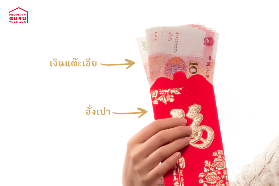 คือ ซองสีแดงที่ผู้ใหญ่ซึ่งทำงานแล้วหรือผู้ที่มีรายได้ นำมาใส่เงินแล้วนำมาให้ผู้น้อย หรืออาจจะแลกเปลี่ยนกันเองในหมู่ญาติพี่น้อง สีแดงของซองเป็นสัญลักษณ์ที่แสดงถึงความโชคดี และเงินที่บรรจุภายในบางครั้งจะเป็นเลขนำโชค เช่น เลข 8 อ่านในภาษาจีนจะมีความหมายถึงความรุ่งเรือง หรือความร่ำรวย