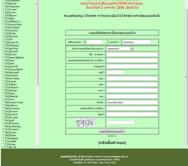 3. หมายเลขรหัสแบบบ้านที่เลือกจะถูกกรอกโดยอัตโนมัติเข้าไปในส่วนลงทะเบียน จากนั้นก็กรอกข้อมูลลงทะเบียนโดยใส่ข้อมูลจริงของผู้ที่จะขอแบบบ้านตามแบบฟอร์มข้างล่านี้