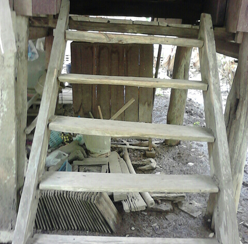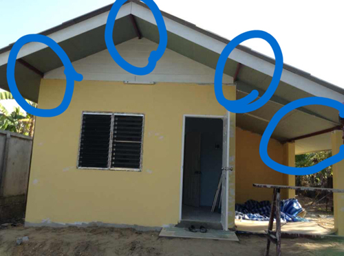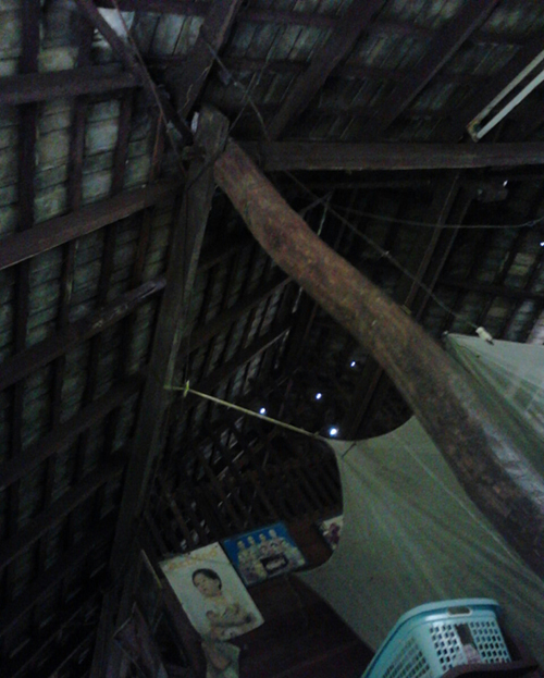 หลังคาบ้านเป็นแบบเปิดประทุน เป็นจุดๆ เวลาฝนตกต้องหากาละมังมาครอบหัวเพื่อไม่ให้เปียก