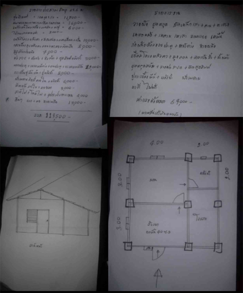 36 ตารางเมตร รายการวัสดุ 119,500 บาท และค่าแรง 6,900 บาท