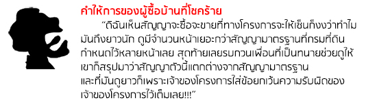 ปัญหานี้เกิดขึ้นบ่อยเลยโดยเฉพาะผู้ประกอบการรายเล็กๆ ตามกฎหมายนั้น ผู้ประกอบการบ้านจัดสรรจะต้องใช้สัญญาจะซื้อจะขายฉบับมาตรฐานที่คณะกรรมการที่ดินกลางกำหนด (