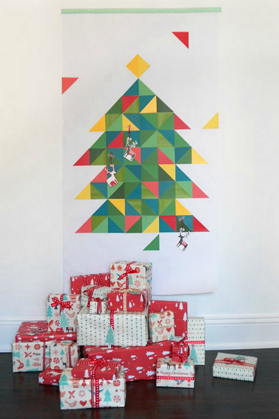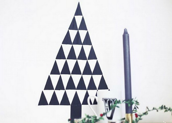 สมัยนี้เราจะเห็นเทปกาวหลากหลายรูปแบบมากยิ่งขึ้น มีทั้งแบบที่เป็นกระดาษลวดลายสวยงามต่างๆ ที่หาได้ตามร้านทั่วไป และยังมีราคาไม่แพงมากอีกด้วย เราสามารถนำมาสรรค์สร้างให้กลายเป็นต้นคริสต์มาสบนผนังบ้านคุณได้หลายแบบ ไม่ว่าจะเป็นทั้งต้นใหญ่ติดเต็มพื้นที่ฝาบ้านเลย หรือจะทำเป็นต้นเล็กๆ ติดตามโต๊ะทำงานก็ช่วยเสริมสร้างบรรยากาศบนโต๊ะทำงานให้ดูมีสีสันขึ้นมาได้ทีเดียว