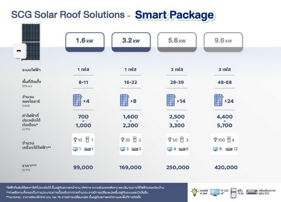 ตัวอย่างแพ็คเกจเริ่มต้น ระบบหลังคาโซลาร์ เอสซีจี ของ เอสซีจี โฮม