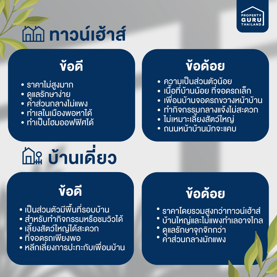 | ทาวน์เฮ้าส์เหมาะกับใคร ? | บ้านเดี่ยวเหมาะกับใคร ? |