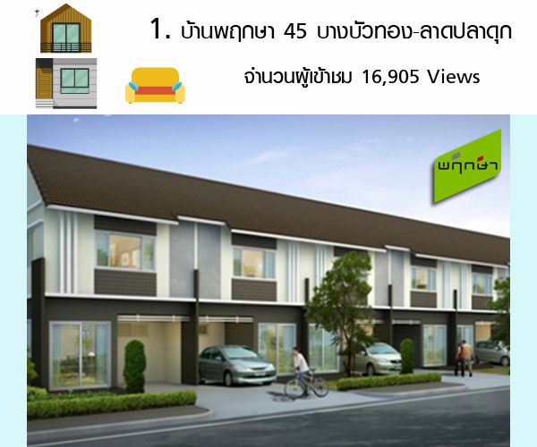 1. บ้านพฤกษา 45 บางบัวทอง-ลาดปลาดุก (Baan Pruksa) - ยอดเข้าชม 16,905 ครั้ง