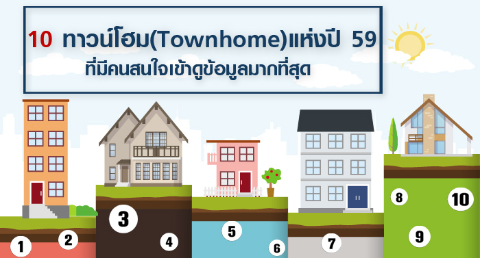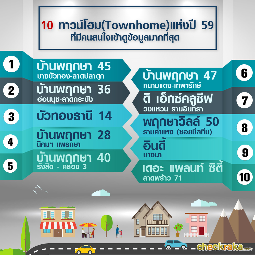 10 ทาวน์โฮม (Townhome) แห่งปี 59 ที่มีคนสนใจเข้าดูข้อมูลมากที่สุด ในเว็บไซต์ CheckRaka.com