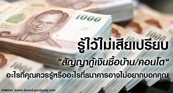 รู้ไว้ไม่เสียเปรียบ "สัญญากู้เงินซื้อบ้าน/คอนโด" อะไรที่คุณควรรู้ . . หรืออะไรที่ธนาคารอาจไม่อยากบอกคุณ