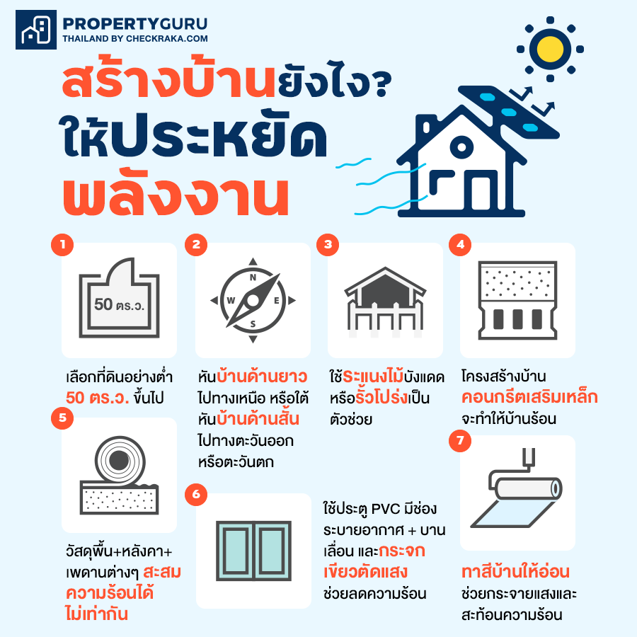 สำหรับบทความนี้จะสรุปตั้งแต่การดูสภาพแวดล้อมที่ตั้งของที่ดินที่เหมาะสมสำหรับการสร้างบ้านประหยัดพลังงาน ไปจนถึงการเริ่มสร้างบ้านเพื่อให้ประหยัดพลังงาน โดยจะดูในส่วนของโครงสร้างและวัสดุที่ใช้ และสุดท้ายก็ได้เอาแบบบ้านและแปลนบ้านประหยัดพลังงานมาฝากกันค่ะ โดยบทความนี้ได้แบ่งออกเป็น 3 หัวข้อใหญ่ๆ ไว้ดังนี้