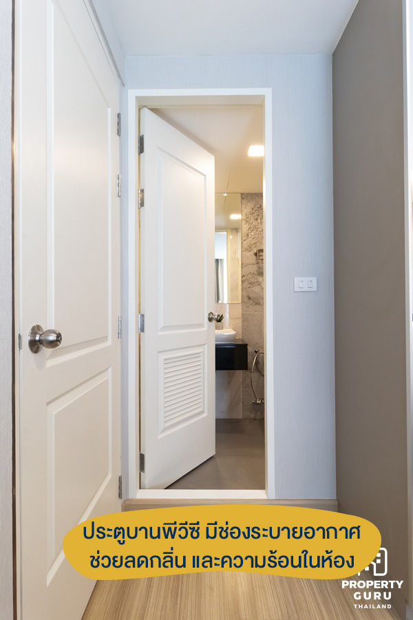 - ประตูห้องน้ำ ใช้บานเปิด และบานพีวีซีที่มีช่องระบายอากาศ เพื่อความสะดวก และทนทานในการใช้งาน