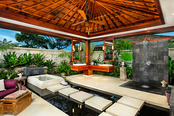 ห้องน้ำในร่มและกลางแจ้งดีไซน์ที่ผสมกันอย่างลงตัว