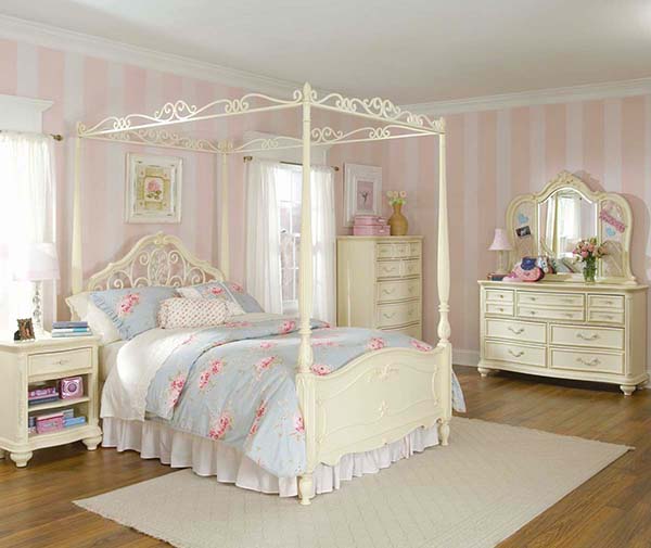 วินเทจจะเน้นสีอ่อนๆ เป็นหลัก สีชมพูอ่อนจะยิ่งเพิ่มความหวานค่ะ เตียงนอนอาจเป็นเตียงเหล็กหรือเตียงไม้ก็ได้ ผ้าปูที่นอนใช้เป็นสีพาสเทลพื้นๆ หรือลายดอกไม้ก็ยิ่งเพิ่มความเป็นผู้หญิงมากขึ้นค่ะ สำหรับผ้าม่านอาจใช้ผ้าลูกไม้หรือผ้าพลิ้วๆ บางๆ จะทำให้ห้องนอนดูสว่างขึ้น