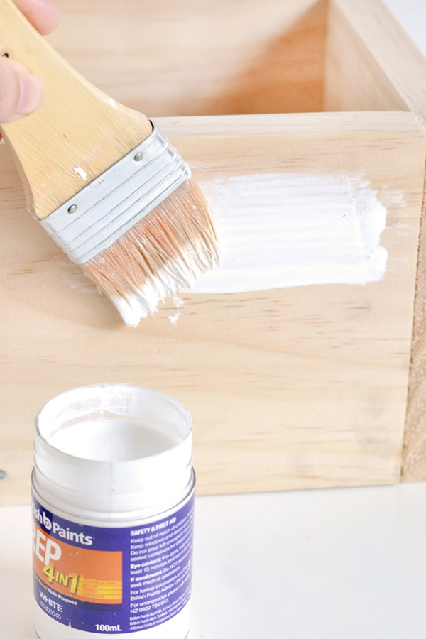 4. ทาสีลงไปบนแผ่นไม้เพื่อลบรอยขรุขระของไม้และเพิ่มความสวยงามค่ะ