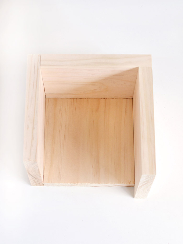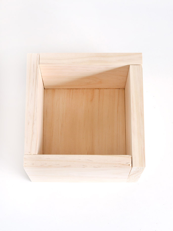1. ตัดแผ่นไม้หรือไม้อัดขนาด 5.5 x 6.25 นิ้ว (สำหรับด้านข้างของกล่อง) และ 5.5 ตารางนิ้ว (สำหรับฐานของกล่อง) จากนั้นใช้กาวติดแผ่นไม้เข้าด้วยกัน
