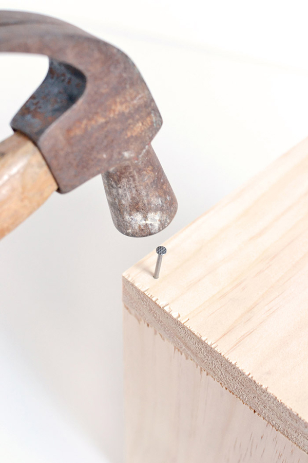 3. เพื่อเพิ่มความแข็งแรง ตอกตะปูลงไปเพื่อยึดชิ้นส่วนแผ่นไม้ไว้อีกรอบค่ะ