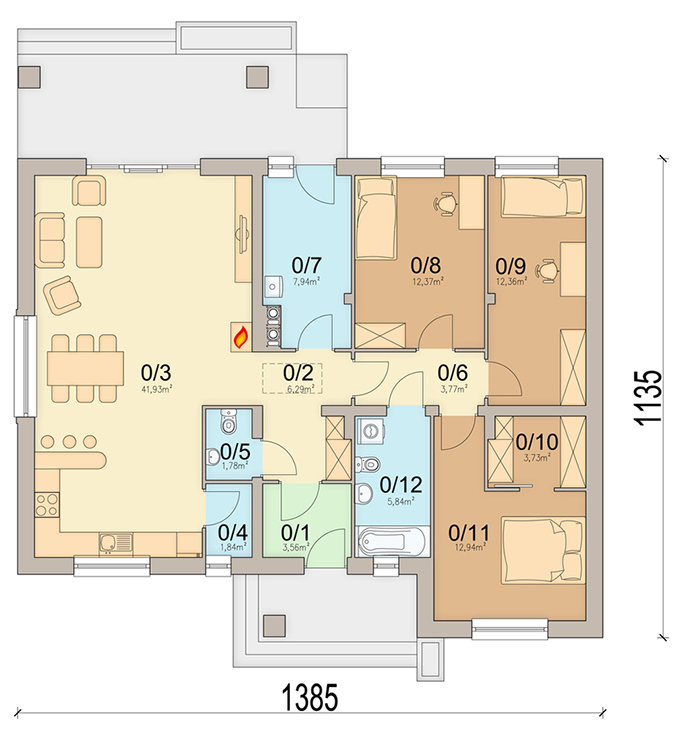 แบบแปลน 3 ห้องนอน 2 ห้องน้ำ