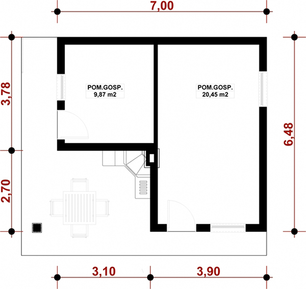 สำหรับแบบบ้านหลังนี้ เป็นบ้านหลังเล็ก Tiny House สำหรับครอบเล็กๆ 2-3 คน มี 2 ห้องใหญ่ๆ ที่สามารถกั้นแบ่งพื้นที่ได้ตามใจชอบ