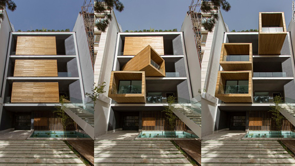 อะไรนะ ! บ้านหมุนได้...ใช่ค่ะ เดี๋ยวนี้เค้ามีบ้านที่หมุนได้แล้ว อยากจะหมุนซ้ายหมุนขวา เปลี่ยนวิวหรือหลบแสงแดดไปด้านนู้นด้านนี้ก็ทำได้ Sharifi-ha หรือบ้านหมุนได้สุดเท่นี้ ตั้งโดดเด่นอยู่ในกรุงเตหะราน ของอิหร่านค่ะ เป็นทาวน์เฮ้าส์ที่สามารถบิดไปบิดมาได้เหมือนรูบิกที่เด็กๆ ชอบเล่นเลย