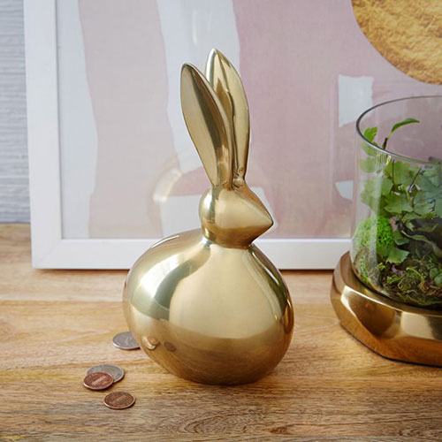 แบบที่ 8 กระปุกออมสินกระต่ายทองเหลือง ตัวเลือกที่ดีสำหรับวางบนโต๊ะ ไว้หยอดเก็บเศษเหรียญ