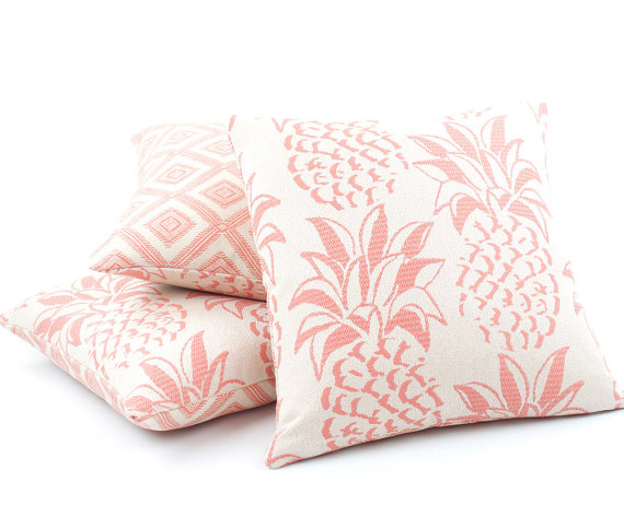 หมอนอิงสีหวานลายสับปะรดสีชมพูเบาๆ