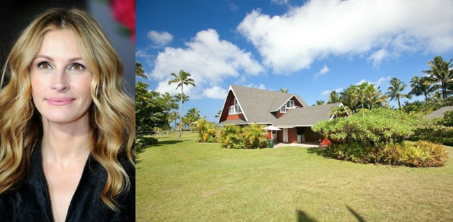 จูเลีย โรเบิร์ต เจ้าแม่หนังรักโรแมนติก คอมเมดี้ ที่โด่งดังจนเป็นที่รักของแฟนหนังกันแบบสุดๆ รับค่าตัวในการแสดงหนังแต่ละเรื่องก็ซื้อคฤหาสน์หรูๆ ได้สบาย อย่างบ้านพักตากอากาศของเธอก็ตั้งอยู่ที่ Hanalei ซึ่งเป็นหมู่เกาะใน Hawaii บนที่ดินติดชายหาดที่ได้ชื่อว่างดงามอย่างกับภาพโปสการ์ด สำหรับมูลค่าของบ้านพักตากอากาศหลังนี้ จูเลียจับจองมาด้วยราคา 30 ล้านดอลลาร์สหรัฐค่า
